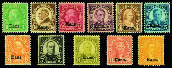 9166 nh 658-668 image1929, Kans., 1¢ to 10¢ complete (Scott 658-668), set of 11, o.g., never hinged, Fine to Very Fine.