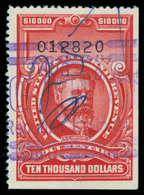 9320 O R732 imageDocumentary, 1958, $10,000 Gresham (Scott R732), cut cancel, Very Fine to Extremely Fine.