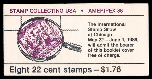 9286 BKnh BK153a image1986, $1.76 Ameripex booklet, black omitted (Scott BK153a), complete and unexploded, o.g., never hinged, Very Fine.