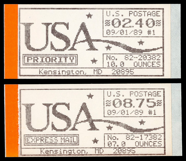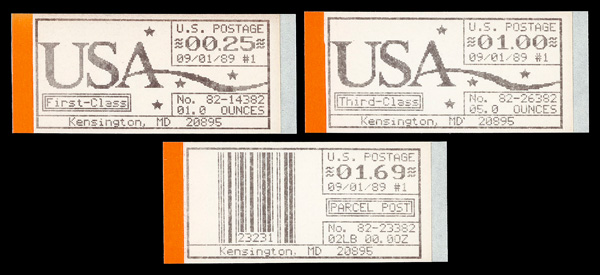 9287 nh CVP11a-CVP15a image1989, 25¢-$8.75 Computer Vended Postage, Kensington MD, machine #82, 1st Day Dated, complete (Scott CVP11a-CVP15a), set of 5, o.g., never hinged, Very Fine.