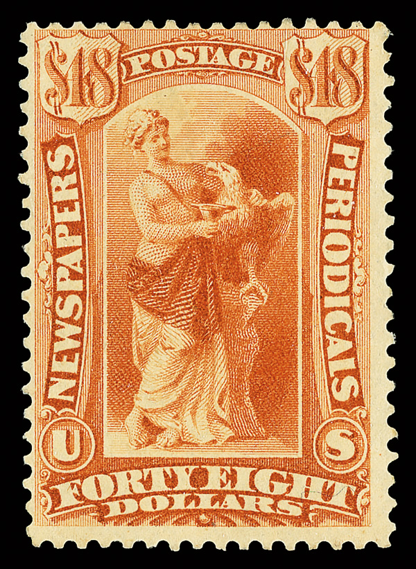 9281 og PR78 imageNewspaper, 1879, $48 yellow brown, A.B.N.C. printing (Scott PR78), very slightly disturbed o.g., rich color, Fine, with 2005 P.F. certificate.