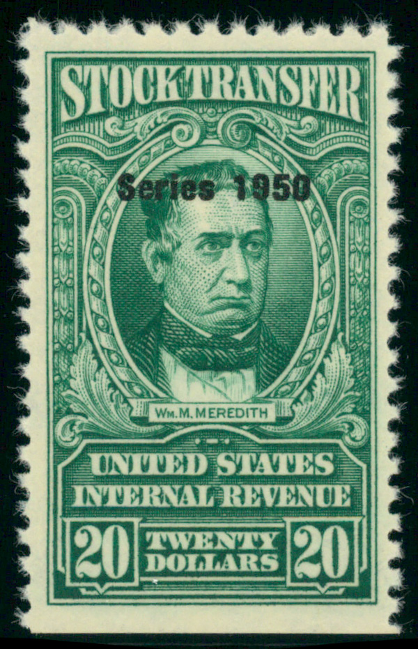 9322 ng RD329 imageStock Transfer, 1950, $20 Meredith (Scott RD329), unused without gum; straight edge at bottom, Very Fine.