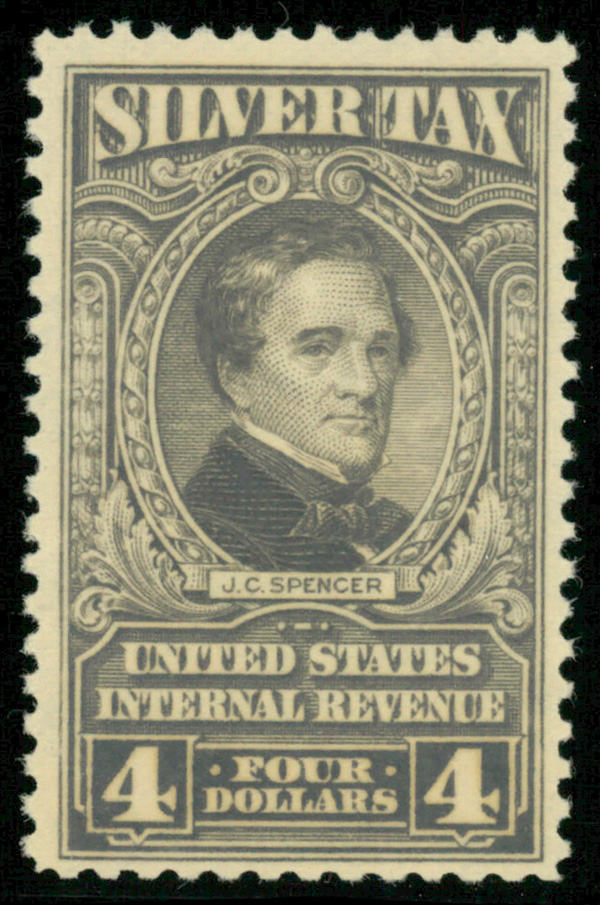 9325 nh RG123 imageSilver Tax, 1944, $4 gray (Scott RG123), o.g., never hinged, Fine to Very Fine.