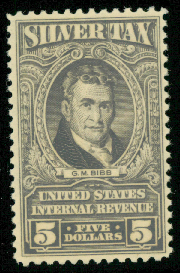 9326 nh RG124 imageSilver Tax, 1944, $5 gray (Scott RG124), o.g., never hinged, Fine to Very Fine.