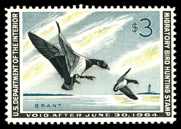 9346 og RW30 imageFederal Duck Stamp, 1963, $3 Brants (Scott RW30), slightly disturbed o.g., Very Fine.