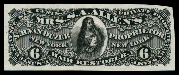 9329 P RS250P3 imageVan Duzer, S.R., 6¢ black, plate proof on India (Scott RS250P3), without gum as issued, Fine to Very Fine.