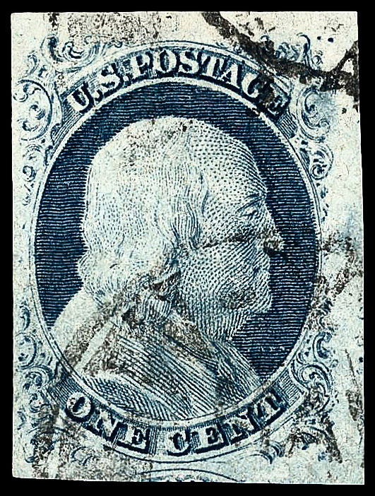 5022 O 22 image1857, 1¢ blue, type IIIa (Scott 22), D relief, plate 4, Post Office fresh with proof-like presentation, nicely complemented by blue town postmark, Fine for this notorious issue, with 2008 One Cent Franklin Plating Archive (Doporto) certificate.