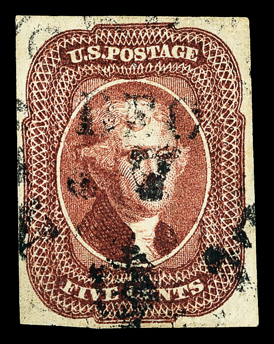 5020 O 11A var. image1852, 3¢ pale yellowish rose red, type II (Scott 11A var.), clean example in alluring color, margins close but clear all around, with faint town postmark (submitted as ultramarine, cert silent, appears black to our eye), Fine to Very Fine, a very rare shade, with 2025 P.F. certificate. (Image) (Image2) (All Images)