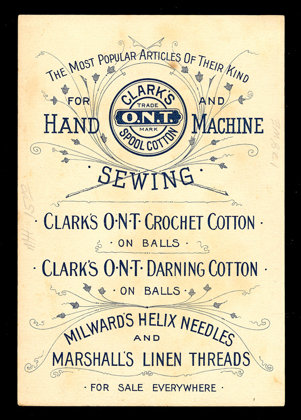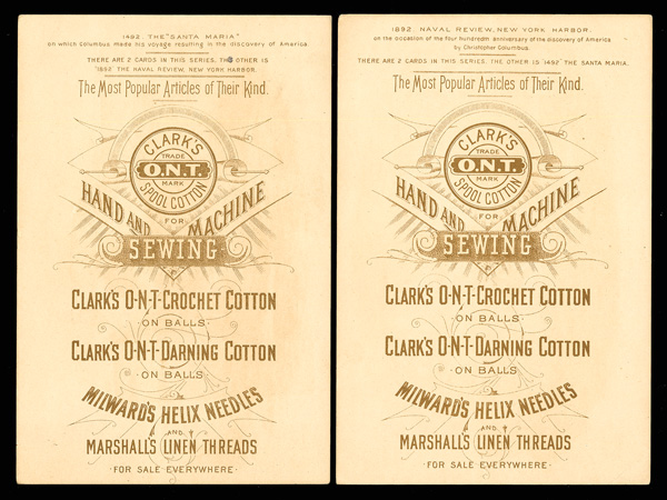 5004 1893 columbian exposition clarks o.n.t. image1893 Columbian Exposition "Clark's O.N.T. Spool Cotton" Advertising Cards, features two very scarce cards in good condition; an attractive pair for any trade card or Columbian Exposition collector. (Image) (Image2) (All Images)