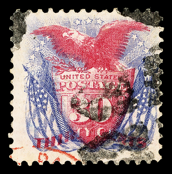 5037 O 121 image1869, 30¢ ultramarine & carmine (Scott 121), single; Reperforated on the left, Fine.