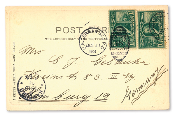 5396 cover 323 image1904, Louisiana Purchase Issues on U.S. German Seapost Postcards & Cover (Scott 323, 324, 325), two postcards and one cover; all attractive and appropriately cancelled; a nice selection with diverse franking; please see full photos online. (Image) (Image2) (Image3) (All Images)