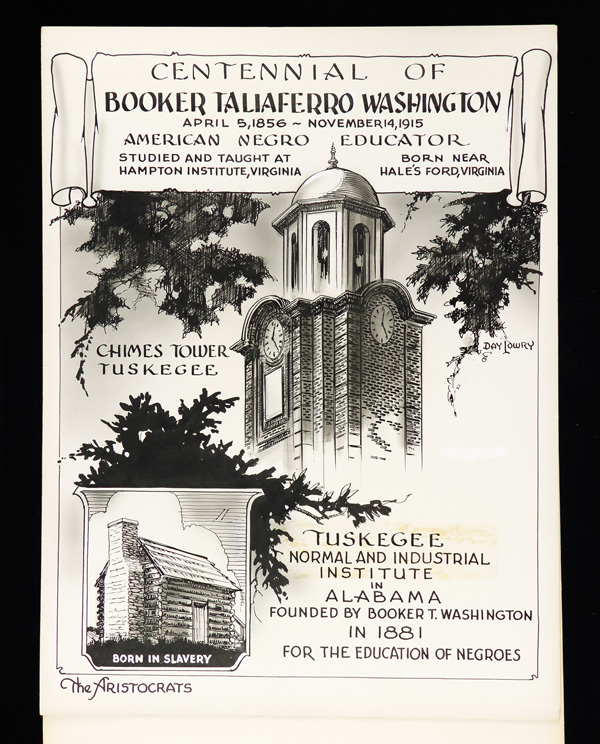 5379 1074 imageDan Lowry, Original Cachet Production Art (1074), 20" x 15" art board with unique pen and ink drawing used by The Aristocrats; very attractive oversized original illustration perfect for framing or as part of an exhibit of the Booker T. Washington 3¢ Issue released in 1956. Shipping charges apply - weight 1 lbs. (Image) Suggested Bid $130