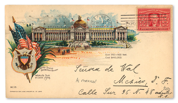 addressed to Mexico; on Hesse Co. souvenir with United States Government Building; in fine condition. (Image)