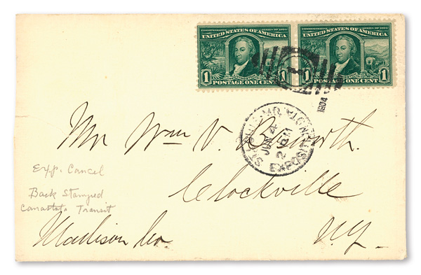 cancelled November 30, 1904; a magnificent cover that is seldom seen, with beautiful franking and cancellations; addressed to New York, New York; an absolutely superb cover. (Image)