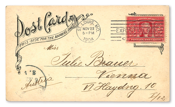 1904, 2¢ Louisiana Purchase on Postcard with Exposition Station Cancel (Scott 324), cancelled November 22, 1904;