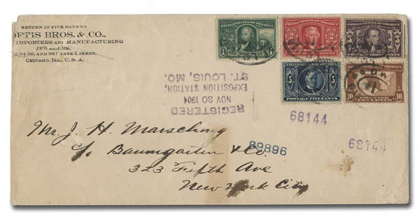 1904, Louisiana Purchase complete on Cover with Registered Exposition Station Cancellation (Scott 323-327), set of 5,