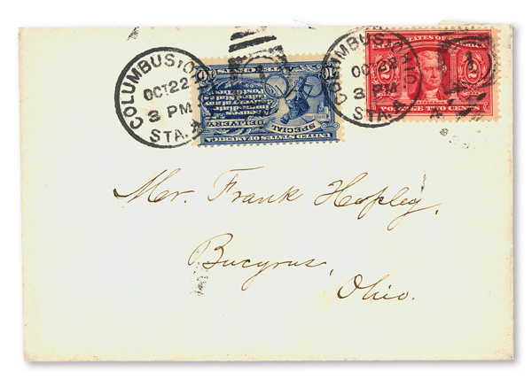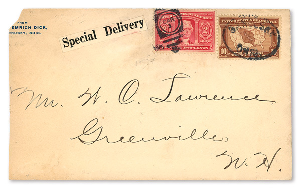 1904, 2¢ & 10¢ Louisiana Purchase on Special Delivery Cover (Scott 324, 327), sent from Sandusky, Ohio to