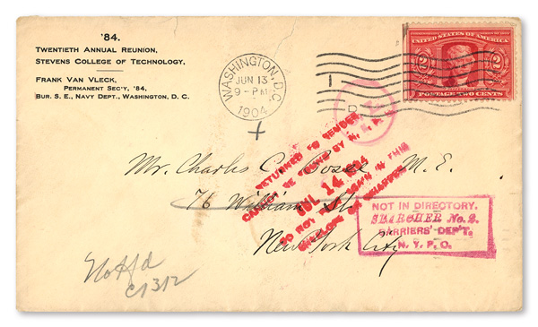 rubber stamped notices; sent from Washington D.C. to New York, New York on June 13, 1904. (Image)