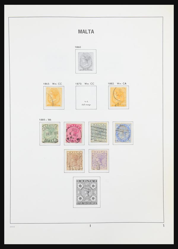 5612   imageMalta, Solid Mint and Used Collection, 1863-2006, well filled, mint never hinged, mint hinged and used stamp collection in two Davo albums; including (Stanley Gibbons no's): 87 (mint), 155 (mint never hinged), 188 (mint never hinged), 189 (mint never hinged), 190 (mint never hinged), 192 (mint never hinged), 205 (mint never hinged), 206 (mint), 208 (mint never hinged), 229 (mint never hinged), 230 (mint never hinged), 231 (mint), 250 (mint never hinged), 266-282 (mint), etc., fully imaged online; unavailable for in-person viewing. (PDF for this Lot) (Image) Suggested Bid $250