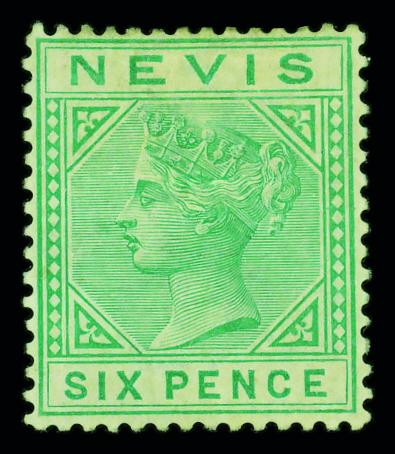 5621 og 28 image1883, Queen Victoria, 6d green (Scott 28), Crown CA watermark, single, o.g., hinge remnants, Fine to Very Fine.