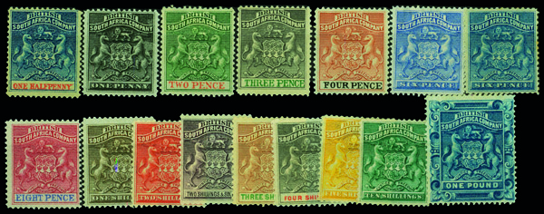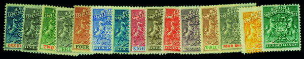 5632 og 1-15 image1892-94, Arms ½d-10sh (Scott 1-15), singles, o.g., lightly hinged, Fine to Very Fine.
