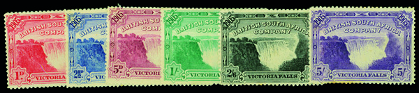 5634 og 76-81 image1905 Victoria Falls, 1d-5s complete (Scott 76-81), complete set of singles, o.g., lightly hinged, Fine to Very Fine.