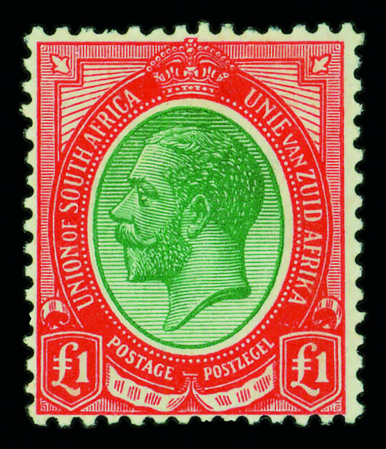 5637 og 16 image1916, King George V £1 red and green (Scott 16), single, o.g., lightly hinged, Fine to Very Fine.