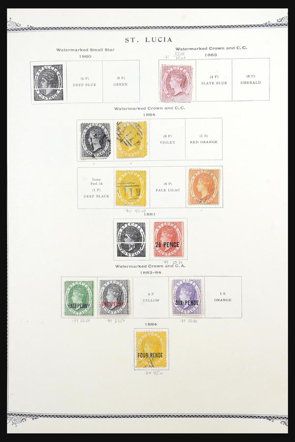 5649   imageSt. Lucia, Mostly Mint Collection, 1863-1992, well filled, mostly mint never hinged and mint hinged stamp collection in Scott album; features (Stanley Gibbons no's): 24 (mint), 25 (mint), 26 (mint), 28 (mint), 30, 53 (mint), 74 (mint), 76 (mint), 128-141 (mixed condition, mint and never hinged), Postage Dues 3-6 (mixed condition, mint and never hinged), etc., fully imaged online; unavailable for in-person viewing. (PDF for this Lot) (Image) Suggested Bid $400