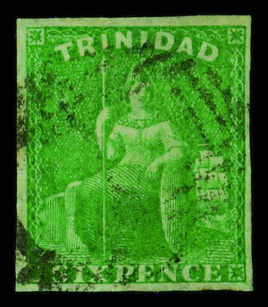 5658 og 4 image1879, Queen Victoria, 1s green (Scott 4), Crown CC watermark, single, o.g., hinge remnant; Trimmed perforations top right., Fine.