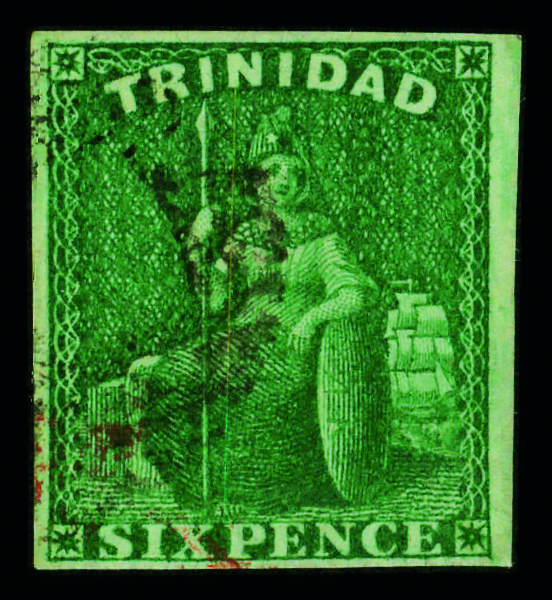 5662 O 16 image1859, "Britannia" engraved, 6d deep green, imperf (Scott 16), single, Very Fine.