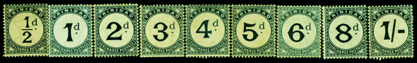 5664 og J1-J9 imagePostage Dues, 1885, ½d-1s Crown CA Wmk complete (Scott J1-J9), complete set of singles, o.g., hinge remnant; Toning, Fine to Very Fine.