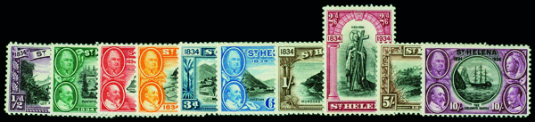5646 og 101-110 image1934 Centenary complete (Scott 101-110), complete set of singles, o.g., lightly hinged, Fine to Very Fine.