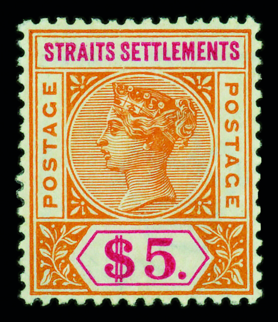5656 og 88 image1898, Queen Victoria, $5 orange & carmine (Scott 88), watermarked Crown CA, single, o.g., invisibly hinged, Fine to Very Fine.