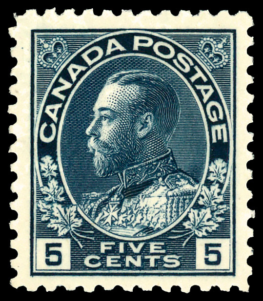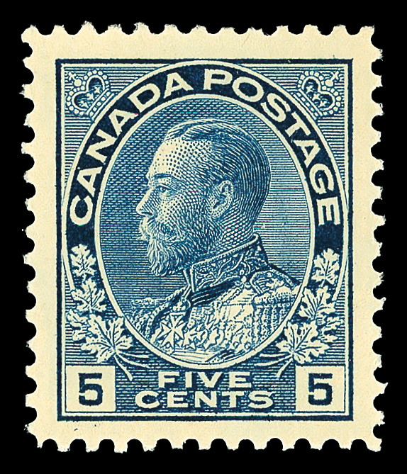 5729 nh 111 image1912, King George V "Admiral", 5¢ dark blue (Scott 111), very well centered with rich color, o.g., never hinged, choice Very Fine.