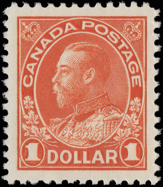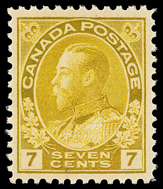 5723 nh 104-122 image1912-25, King George V "Admiral", 1¢ to $1 complete (Scott 104-122), set of 18, o.g., never hinged (1¢ yellow & 10¢ blackish purple hinged), Fine to Very Fine.