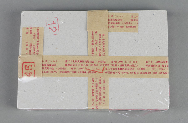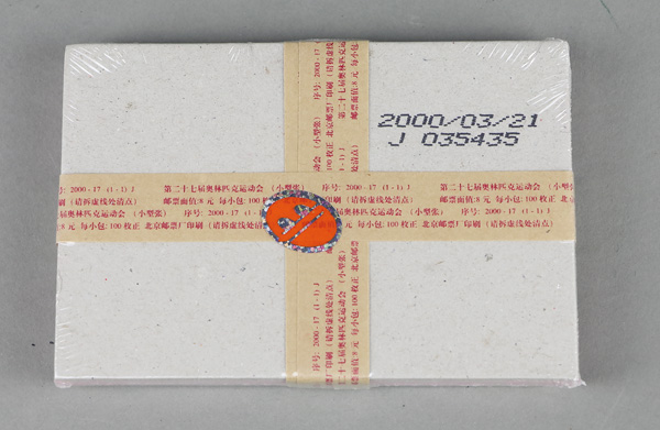 5786 nh 3051 image2000, $8 27th Olympic Games souvenir sheet (Scott 3051), two Post Office packs of 100, one unopened, o.g., never hinged, Very Fine. Shipping charges apply - weight 1.2 lbs.