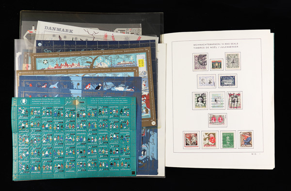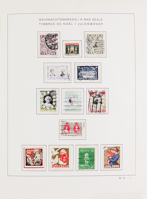 5794   imageDenmark, "Jingle All the Way" Complete Collection of Christmas Seals in Premium Album, 1904-96, A rare Schaubek album created just for Danish seals, the country that started it all. Complete to 1993 with singles into the 1950s (the majority with cancellations) and from then on entirely in sheets with over 30 extras. Also on pages is Greenland until 1996 with full sheets from 1979 onwards. Overall CV according to the AFA catalogue is approximately 16,000 DKK, generally Fine to Very Fine, quick flip viewable online. Shipping charges apply - weight 5.4 lbs. (Video for this lot) (Video2 for this lot) (Image) (Image2) (All Images)