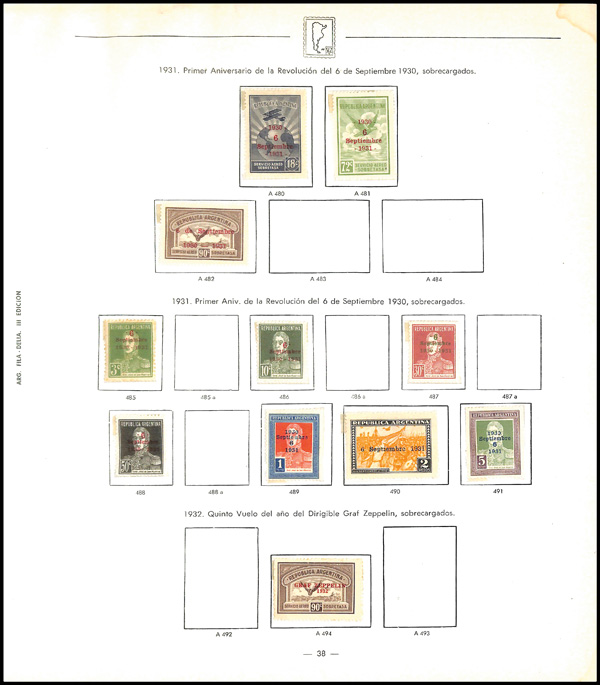 5762   imageArgentina, Mostly Used Collection in Argentinian-made Album, 1860-1976, From the streets of Buenos Aires comes this seldom-seen Fila-Delia album with a very well-filled collection after 1940. Highlights include mint #399-405, 474, 582-83, C27-28, C37, and used 583, among others, overall Fine to Very Fine, additional scans & video online. Shipping charges apply - weight 7.2 lbs. (PDF for this Lot) (Video for this lot) (Image) Suggested Bid $325