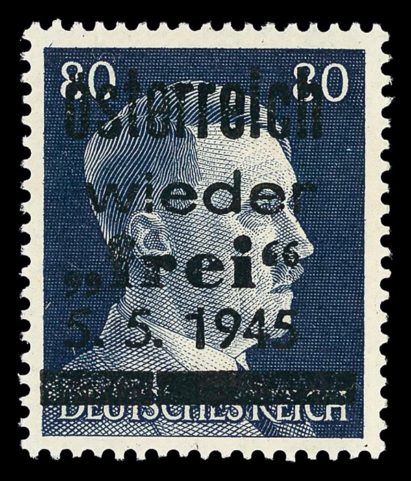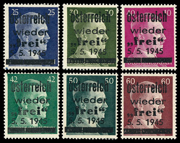5764 nh   imageLocal, 1945 Losenstein (Oberösterreich), Hitler Head overprints complete, set of 19, o.g., never hinged, Post Office fresh, the overprints a mix of letterpress and lithography (Michel value as lithographed set), Very Fine.