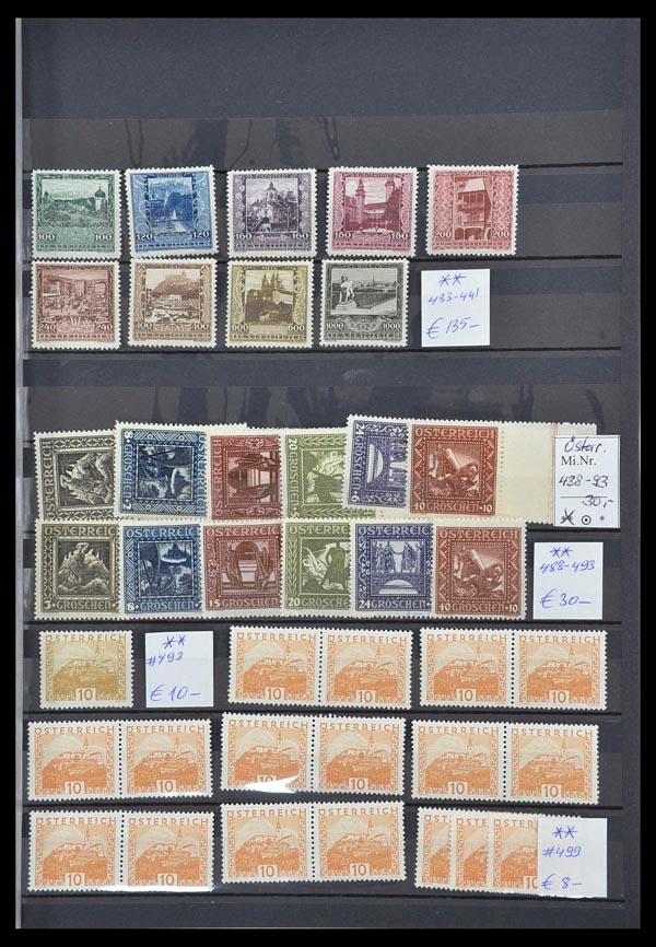 5765   imageAustria, Never Hinged Stock Compilation, 1923-57, in stockbook; many expensive stamps in numbers such as (Michel no's): 504 (mint never hinged, 17x), 536 (mint never hinged, 13x), 538 (mint never hinged, 3x), 540 (2x), 541 (mint never hinged), 545-550 (mint never hinged), 591-596 (mint never hinged, 4x), 613-616 (mint never hinged, 4x), 617-622 (mint never hinged, 5x), 623-626 (mint never hinged), 632-637 (mint never hinged, 5x), 649 -657 (mint never hinged, 5x), 878-884 (mint never hinged, 2x), 952 (mint never hinged, 4x), 953 (mint never hinged, 8x), etc.; catalogue value over €11350, fully imaged online; unavailable for in-person viewing. (PDF for this Lot) (Image) Suggested Bid $600