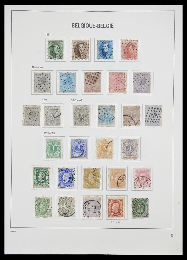 5773   imageBelgium, Two-Volume Collection, 1849-1975, well filled, mint never hinged, mint hinged and used collection in two Davo albums, in which e.g. (Michel no's): (34, fake), 127 (mint, 5 Franken), 157, 235-243 (mint), 262-265 (mint), 291-297 (mint), 354-365 (mint), 386-392 (mint), newspaper stamps 1-19 (mint), 20-41 (mint, with a few stamps canceled), etc., fully imaged online; unavailable for in-person viewing. (PDF for this Lot) (Image) Suggested Bid $400