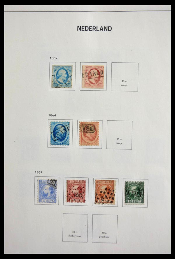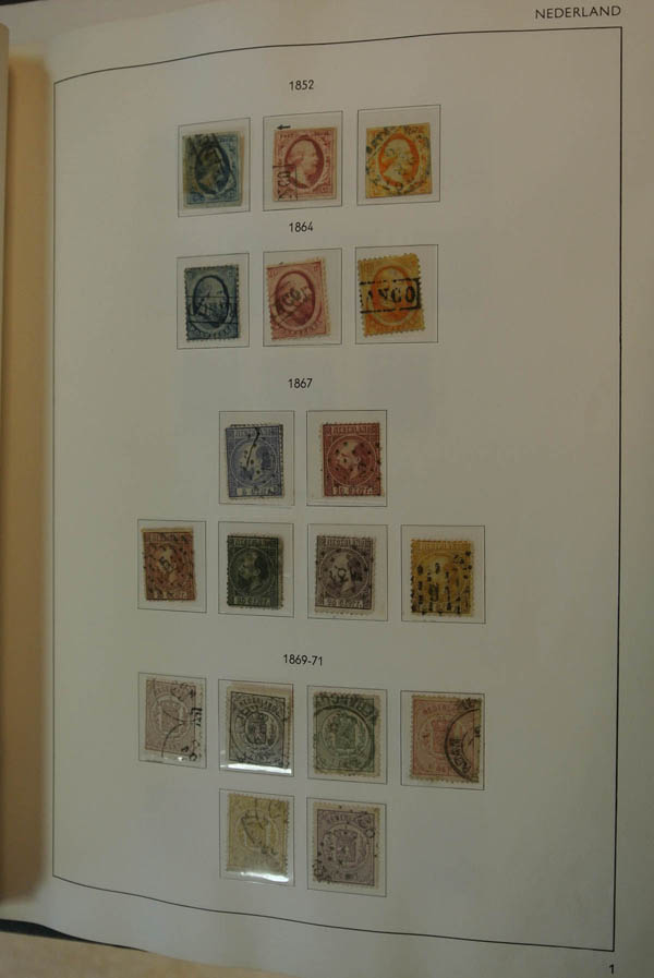 5896   imageNetherlands, Specialized 1869-71 Issue Collection, nicely filled, remainder exhibition collection on self-made album pages in folder; features better stamps, cancels, colors, Specimen, imperforate stamps, etc., fully imaged online; unavailable for in-person viewing. (PDF for this Lot) (Image) Suggested Bid $500