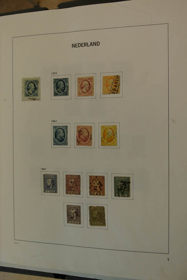 5901   imageNetherlands, Extensive Collection, 1852-1997, nicely filled, mint never hinged, mint hinged and used collection in four Davo albums; collection contains nice classic part in somewhat mixed quality and also better stamps like (NVPH no's): 28, 44, 49, 105, 136-138, 356-373, 402-403B (mint, Legion sheets) etc., fully imaged online; unavailable for in-person viewing. (PDF for this Lot) (PDF2 for this Lot) (Image) Suggested Bid $400