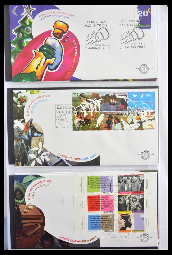 5905   imageNetherlands, Complete Collection of First Day Covers, 2001-12, complete collection of FDCs (E429 till E649) in two Davo FDC albums; catalog value over €1500, fully imaged online; unavailable for in-person viewing. (PDF for this Lot) (Image) Suggested Bid $120