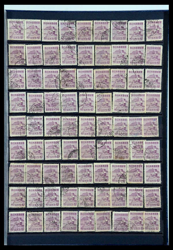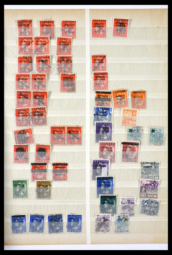 5913   imageJapanese Occupation of Netherlands East Indies, Solid Collection Including Interim Period, album with complete mint hinged sheets from the Interim Period of Indonesia (many duplicates), various cancelled part-sheets and loose stamps of the Japanese Occupation; very large stock, ideal for reseller, fully imaged online; unavailable for in-person viewing. (PDF for this Lot) (Image) Suggested Bid $500
