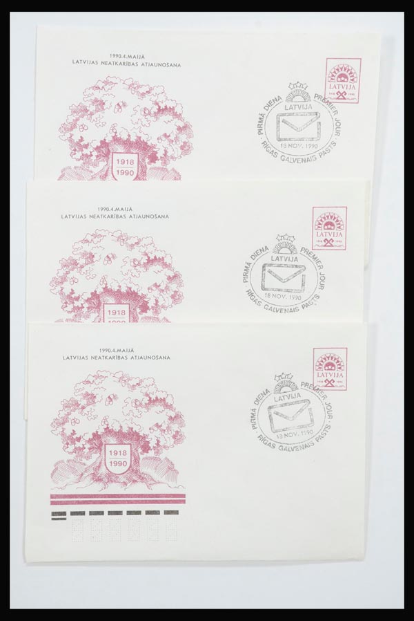 5883   imageLatvia, Postal History Collection, 1990-92, large box with hundreds of FDC's and postal stationery neatly arranged in several smaller boxes; some covers present, fully imaged online; unavailable for in-person viewing. (PDF for this Lot) (PDF2 for this Lot) (PDF3 for this Lot) (PDF4 for this Lot) (Image) Suggested Bid $250