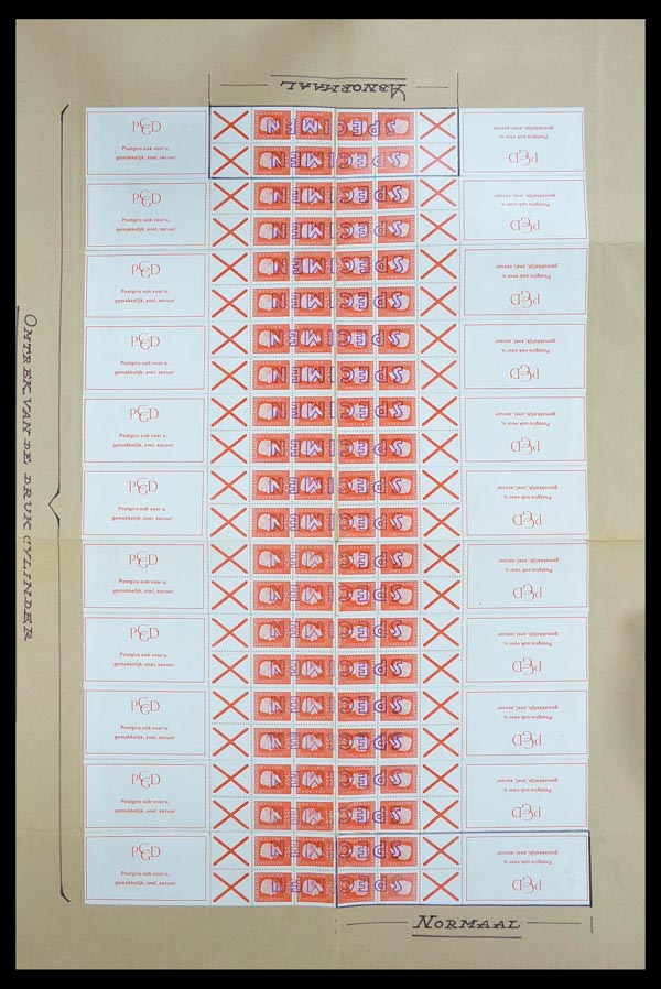 5898   imageNetherlands, Specimen Booklets Collection, two large proof sheets (?) with stamp booklets with specimen overprints; contains NVPH #8b (22) and 9d (22); unique find, fully imaged online; unavailable for in-person viewing. (Image) (Image2) (All Images)