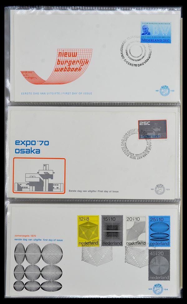5903   imageNetherlands, Complete First Day Cover Collection, 1970-2011, complete collection of unaddressed envelopes (E102-E642) in six luxe Davo FDC albums with slipcases; catalogue value approximately €3000, fully imaged online; unavailable for in-person viewing. (PDF for this Lot) (PDF2 for this Lot) (Image) Suggested Bid $200