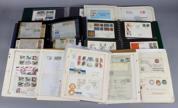 5931   imageSweden, Postal History Lot with Advertising Covers, Special Events, etc, 1850-2020, Approximately 650 covers, from an 1850 stampless cover from Uddevalla to Wenersborg, to numerous local posts, dozens of advertising covers including over 50 Svarslösen (business reply labels), a few Christmas seals from the early part of the 20th century tied to envelopes, an abundance of special events, such as the World Esperanto Congress, and beautifully cacheted FDCs from 1949 onwards, overall Fine to Very Fine, video footage accessible online. Shipping charges apply - weight 18 lbs. (Video for this lot) (Video2 for this lot) (Video3 for this lot) (Video4 for this lot) (Image) Suggested Bid $550