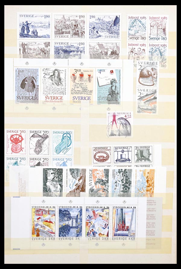 5938   imageSweden, Booklet Pane Combinations Collection, 1940-2002, extensive lot canceled combinations from stamp booklets in large box with several stockbooks and many glassines; lot contains approximately 10,000 combinations, including better ones; ideal lot to break up, for approval booklets, eBay, etc., fully imaged online; unavailable for in-person viewing. (PDF for this Lot) (Image) Suggested Bid $250